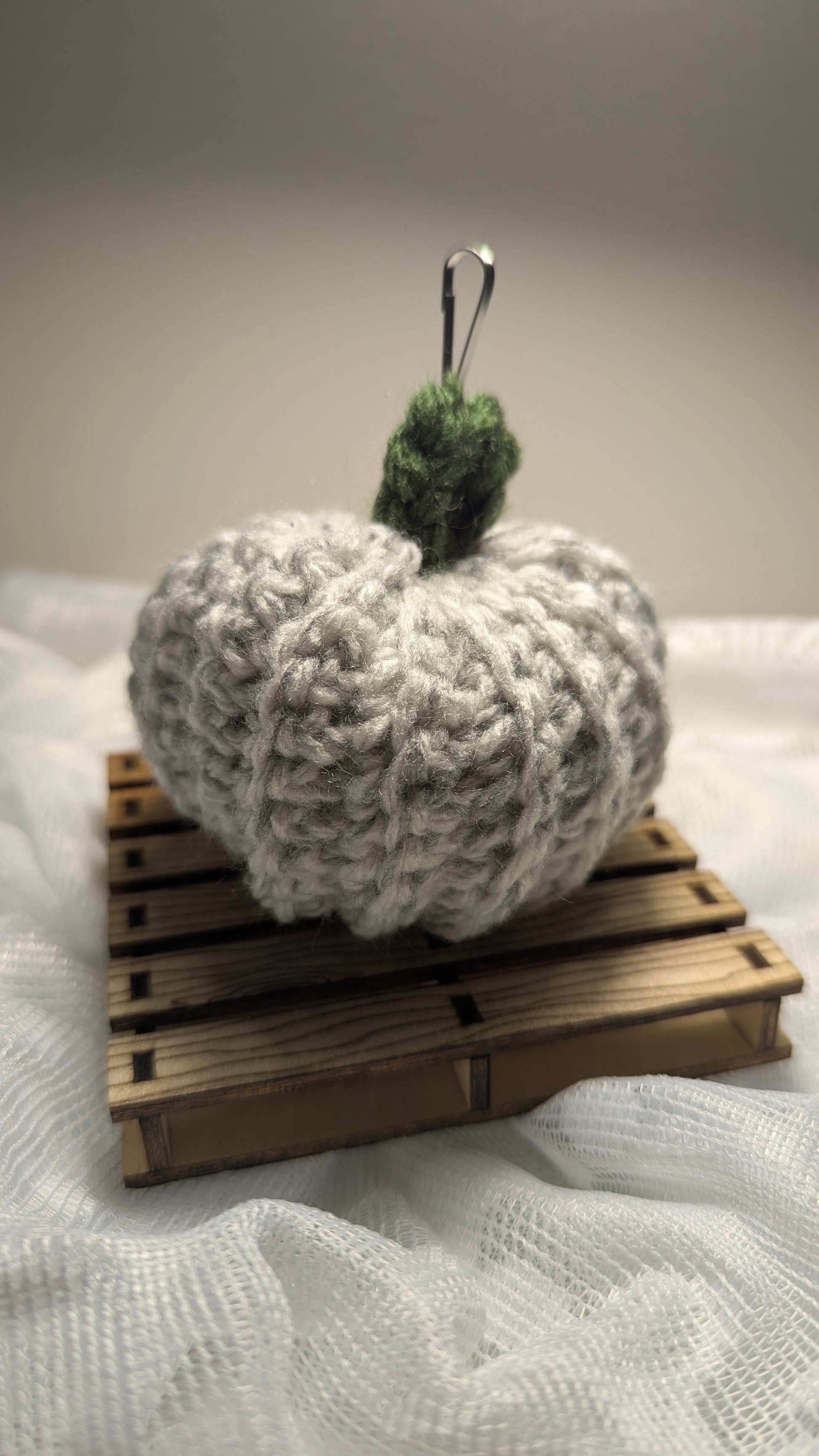 Grey Pumpkin Hand-Crocheted Keychain with Dark Green Stem